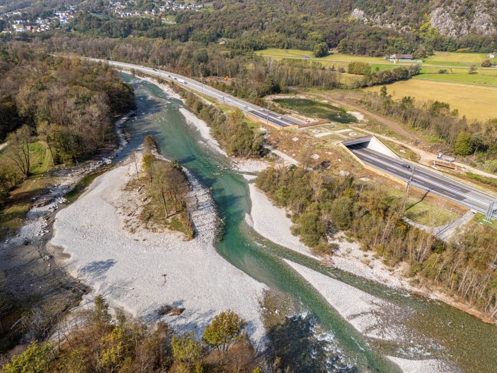 A partire dal mese di febbraio 2024 sono stati avviati i lavori per la realizzazione di un passaggio faunistico sopra l’autostrada A13 con l’obiettivo di collegare le zone golenali d’importanza nazionale “Isola Sgravér” e “Ai Fornas”, situate sulle opposte sponde del fiume Moesa. Questa infrastruttura permetterà alla fauna selvatica di attraversare l’autostrada in sicurezza, favorendo gli spostamenti di specie di piccola taglia -come tassi, volpi, faine, anfibi e rettili- sia quelli di animali di grandi dimensioni, tra cui cervi, caprioli e cinghiali. In tal modo si ridurranno i conflitti e i rischi legati all’interazione tra fauna e traffico stradale.